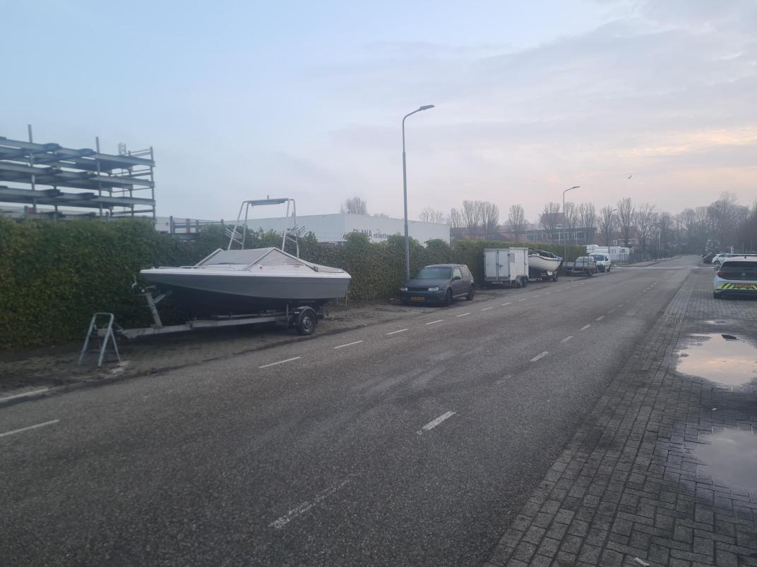 Aan de Nijverheidsstraat ter hoogte van nummer 3 staan al geruime tijd meerdere boottrailers en aanhangwagens op de openbare weg.