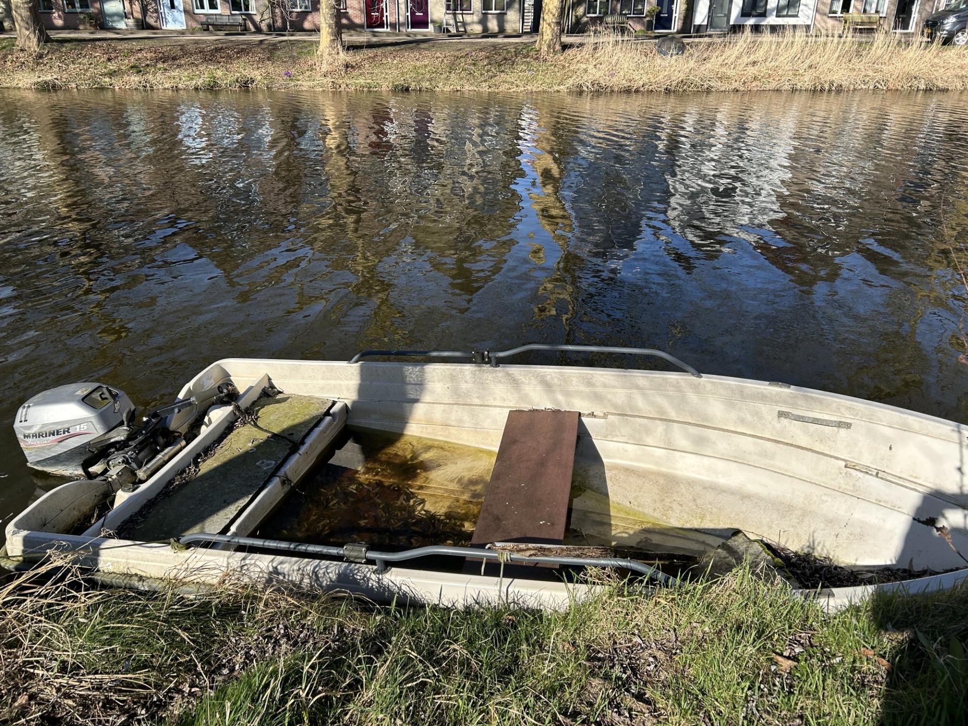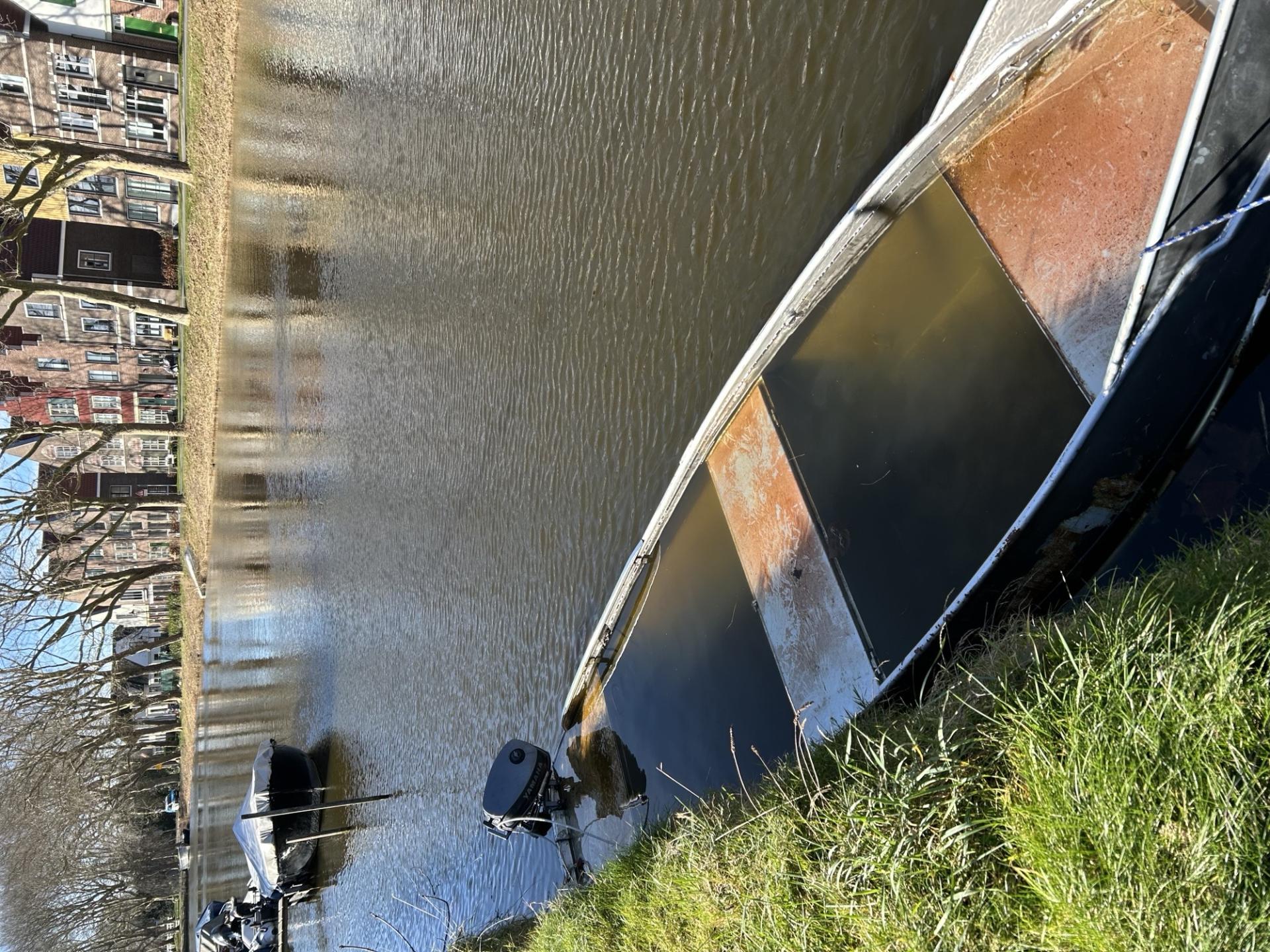 Aan de Versteeghsingel in Edam liggen een aantal boten op het randje van zinken of zijn al gezonken.